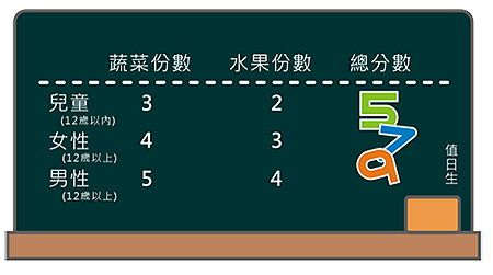 全民蔬果攝取的份量如下: