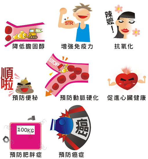 小朋友們知道為什麼要吃這麼多蔬菜水果嗎?因為蔬菜、水果及穀類所含的「植物性生化素」,簡稱「植化素」,除了可以對抗疾病之外,多吃蔬果,還可以增強免疫力制止細胞從正常的狀態轉成癌細胞、幫助身體健壯,具有防癌、抗癌的效果,因此被稱為「21世紀的維他命」,所以乖孩子一定要天天吃足5蔬果也要提醒家人一起天天「蔬果彩虹579」哦!